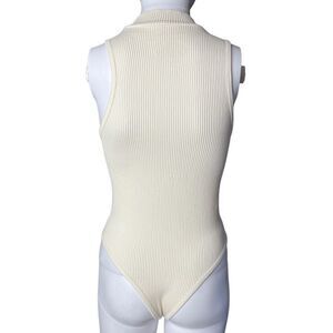 Pink Rose Ribbed Mock Neck Bodysuit Cream White XS Small