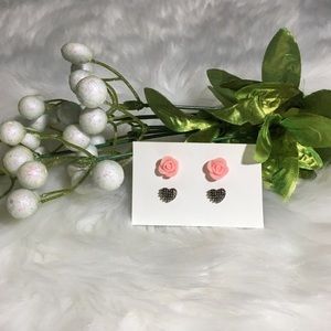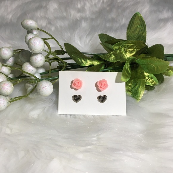 Pink Roses & Gold Hearts Earring Set New, never worn. Will accept all reasonable offers!