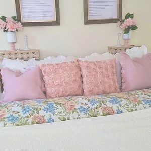 Pink Roses Linen Pillow Covers