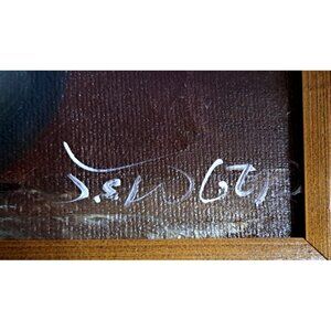 Frame measures 17"x14.5"x2.5". Painting measures 8" x 10". I am unable to identify the artists' signature.