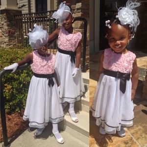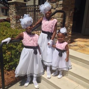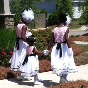 Stunning pink rosette dress with white tulle and chiffon bottom trimmed in black. Worn once for a few hours. Absolutely beautiful dress. NO TRADES
