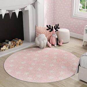 Charming pink round rug featuring a subtle star pattern. Perfect for adding a touch of whimsy to any room.