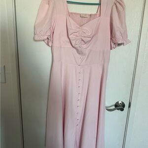 Elegant pink blouse with ruched detailing. Perfect for any occasion.