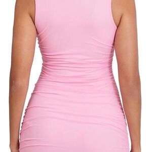 Stylish pink ruched bodycon dress. Perfect for a night out.