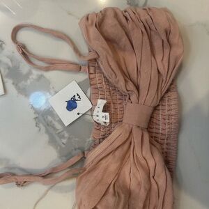 Stylish pink ruched top with bow detail. Perfect for a chic look.
