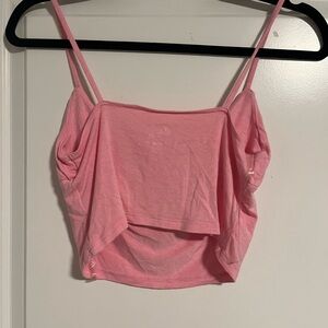 Stylish pink crop top. Features ruched detailing. Perfect for casual outings. Worn once.