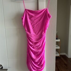 Hit pink ruched mini dress from That’s so fetch. Fits great, super flattering.