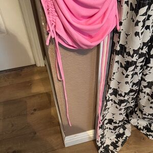 This stylish pink ruched mini dress is perfect for any occasion. Its vibrant color and flattering fit make it a must-have in your wardrobe.