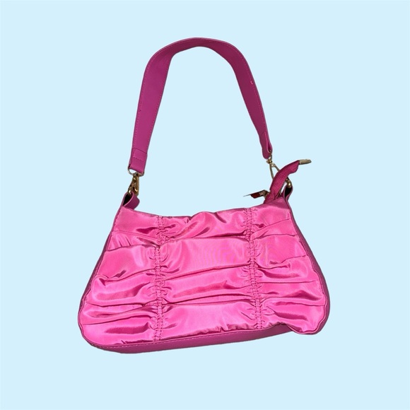 Pink Ruched Purse Thick Strap Double Lined Gold Zipper/Accents