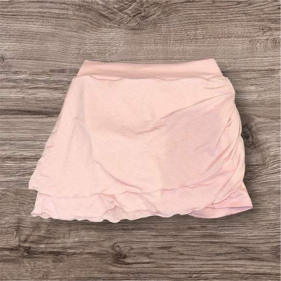This playful pink mini skirt is crafted in a skater style, ideal for casual and resort wear. It features charming ruched and ruffled details that enhance its flowy silhouette. The lightweight fabric ensures comfort and ease, perfect for sunny days.