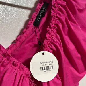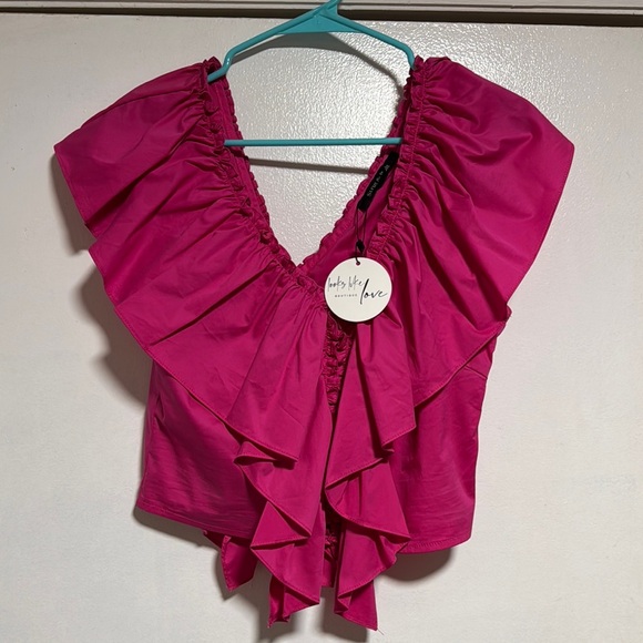 Pink Ruched Ruffled Tie Front Blouse