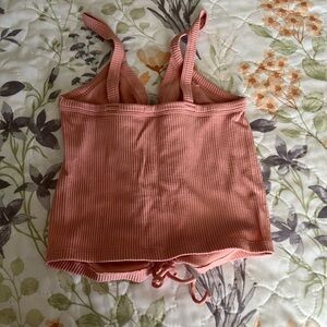 Stylish pink ruched tank top with adjustable straps. Perfect for casual wear.