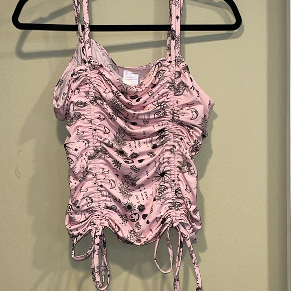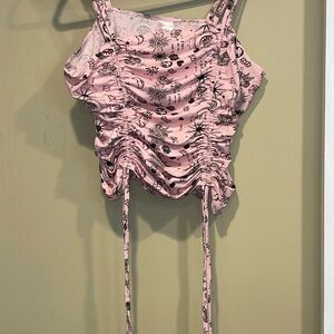 This stylish tank top from No Boundaries features a charming pink hue with a ruched design that adds a touch of elegance. The tie front detail allows for a customizable fit, making it ideal for casual wear. Its tank top style ensures comfort and ease throughout the day.