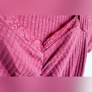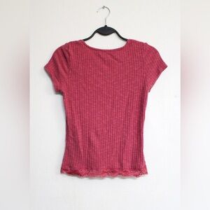 Pink ruched top with short sleeves and lace. Size medium. Hardly worn.