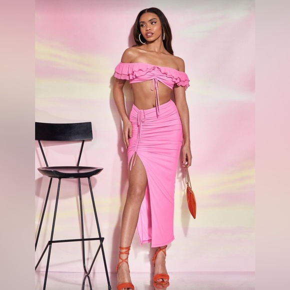 Off Shoulder Ruffle Trim Drawstring Crop Top & Split Thigh Skirt - Size 8/10 (L) - Perfect condition - Only worn once