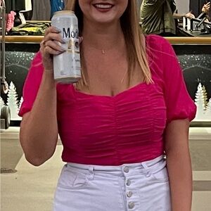 Elevate your style with this chic pink ruched top. Perfect for any occasion, this top offers a flattering fit and a vibrant color that stands out.