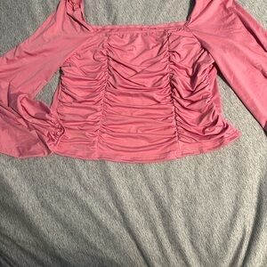 Elevate your style with this chic pink ruched top. Perfect for any occasion, this top offers a flattering fit and a trendy look. Plus size 2XL