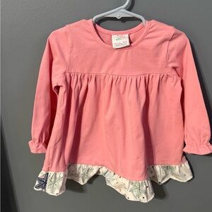 Charming pink blouse with playful ruffle hem, perfect for adding a touch of fun to any outfit.