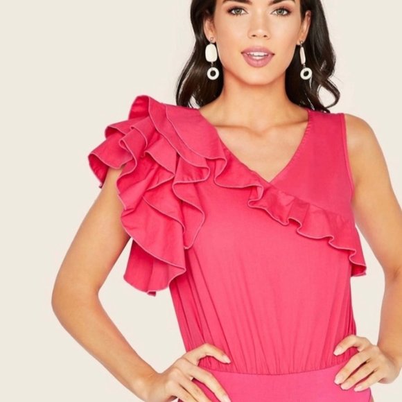 Brand new unique tank bodysuit with ruffled shoulder and snap bottom. Can dress up or down. Never worn.