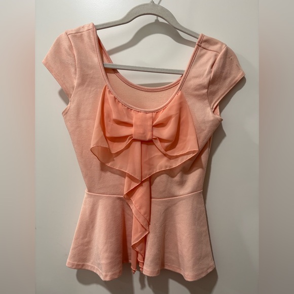 Pink peplum blouse with adorable large bow