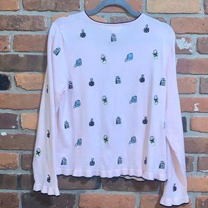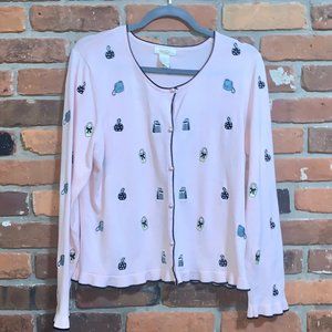 Pink Ruffle Cardigan With Embroidered Purses Size XL