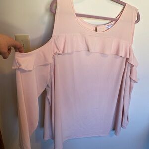 Elegant pink ruffle cold shoulder top, perfect for any occasion. Soft fabric and stylish design make it a must-have in your wardrobe.