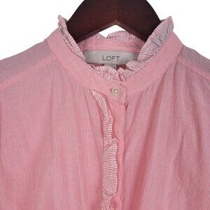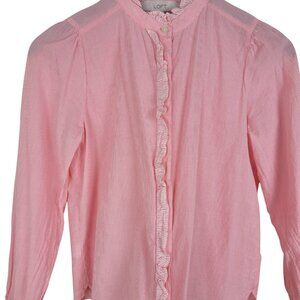 Pink Ruffle Collar Button Up Blouse 100% Cotton XSP