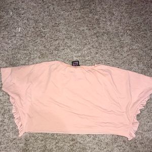 Cute lil’ pink crop top with ruffles going down the sleeves