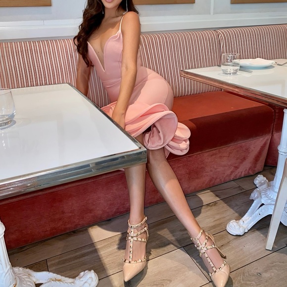 Pink ruffle dress. Stretch material. This has the wow factor for your next event!