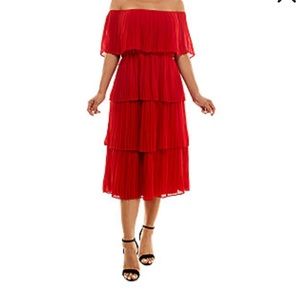 Light pink ruffle tiered dress. Never worn. New without tags. Off the shoulder look.last photo for is example of how this fits on!