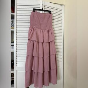 Tiered Ruffle Long Flowy Pink Maxi Dress