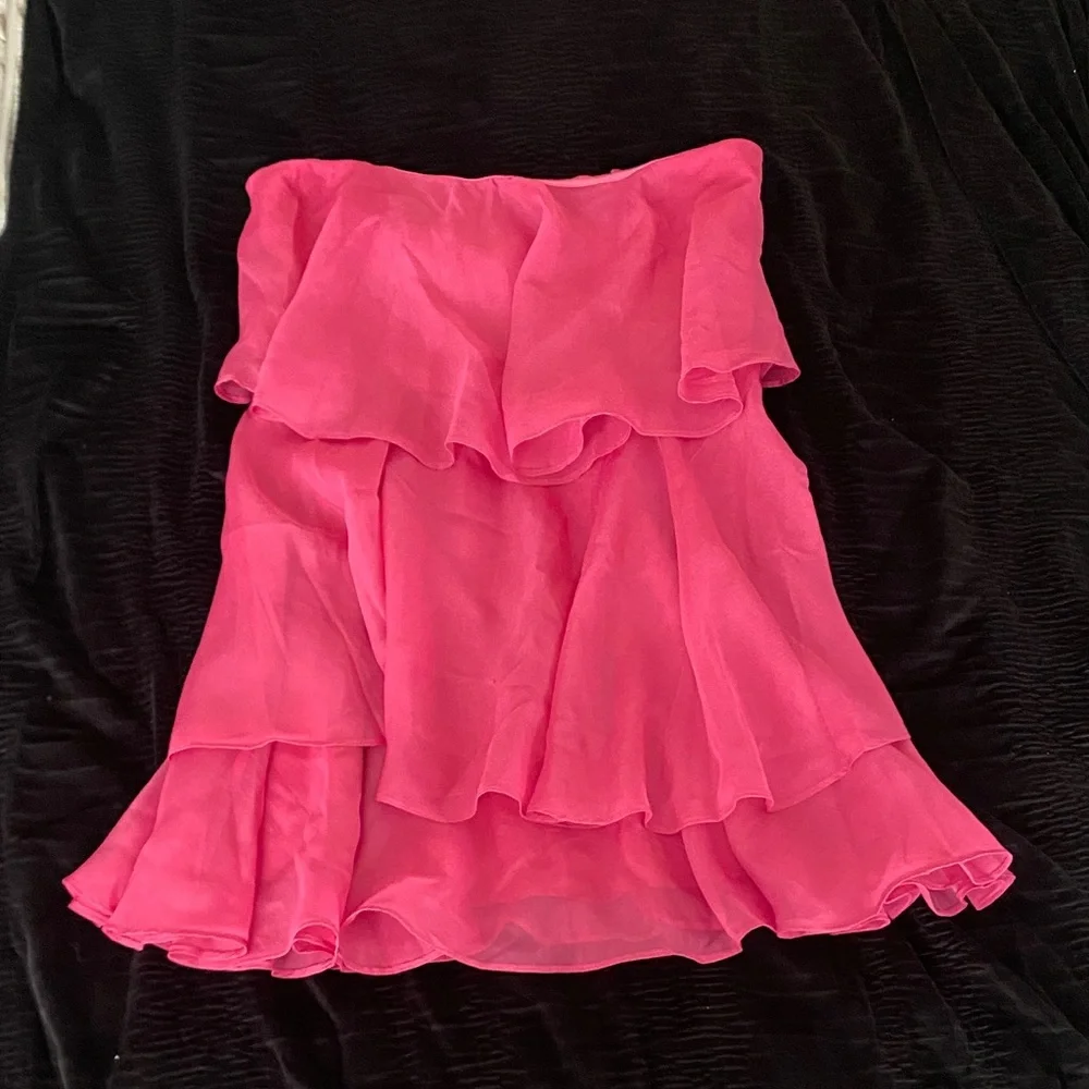 Pink strapless dress with ruffled layers. Size small. Worn once.