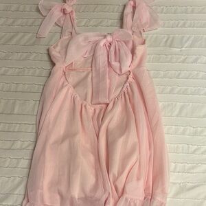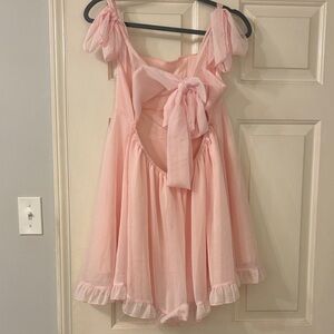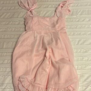 Light pink sdress with delicate ruffle hem and tie shoulder straps. Soft, airy fabric for comfortable all-day wear. Feminine silhouette perfect for parties and special occasions. Easy to style and gentle on skin. worn twice