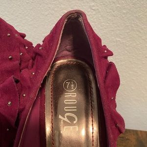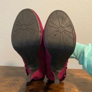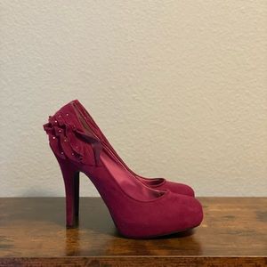 This listing is for a pink pair of high heels. They are size 7.5. The shoes are in used condition. Please note pictures for specific condition.