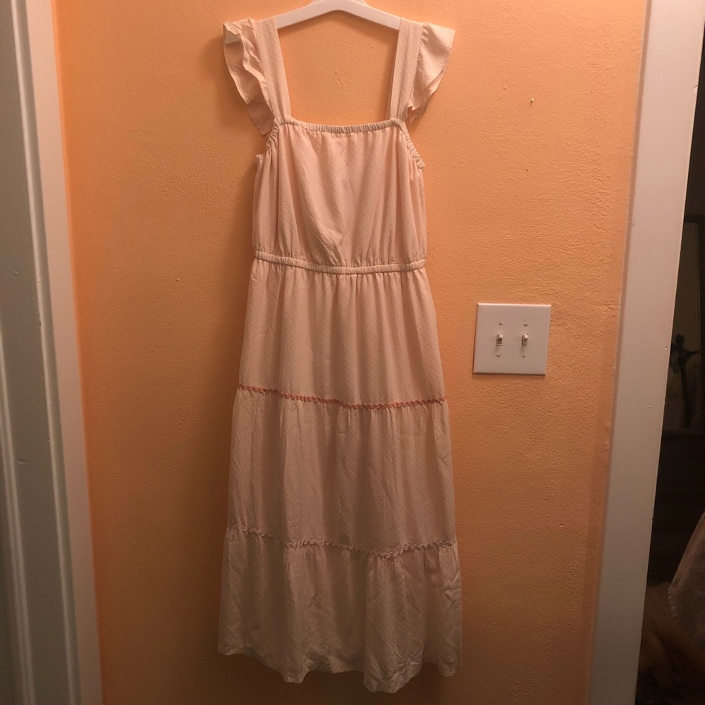 Feminine maxi dress. Absolutely beautiful and hard to part with- just too roomy in the chest area for me :’) Only worn once. You will get so many compliments in this gorgeous dress!