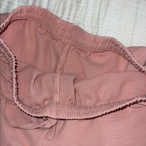 Pink Ruffle PJ Set. Top is a flouncy material in baby-doll style with stretchy ruffle sleeves. Bottoms are same material with ruffles on trim and stretchy waistband. There is no tag on the inside other than one shown.