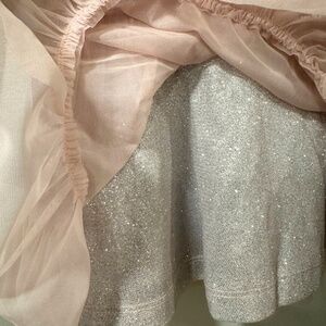 Pink Ruffle Shoulder Dress with Silver Sparkle Underlay – 18 Months