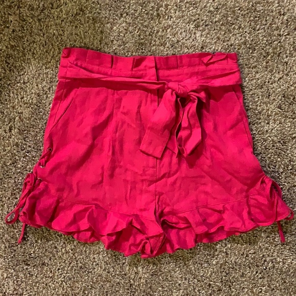 Hot Pink ruffle skort with tie belt and tie sides