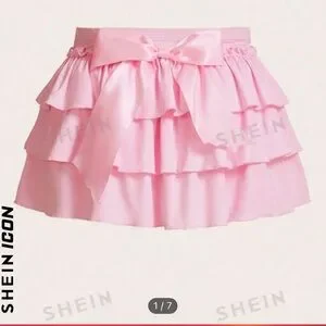 shein pink ruffle skirt with a satin box has shorts built into the skirt worn once