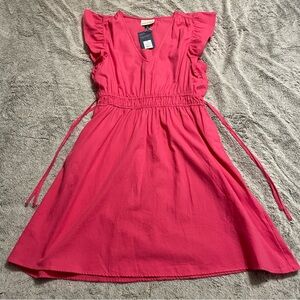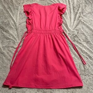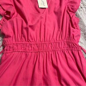 Chic and stylish pink dress with ruffle sleeves. Perfect for any occasion.