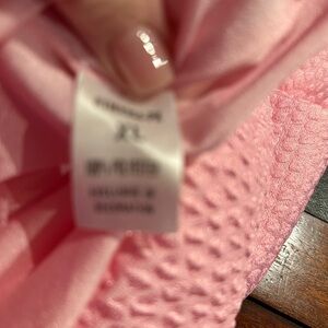 Chic pink dress with ruffle sleeves. Perfect for any occasion. Fully lined. Flattering. Measures 22 inches from armpit to armpit laying flat and almost 36 inches from shoulder to bottom of hem.