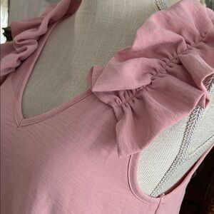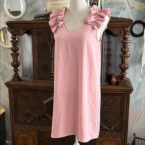 Chic and stylish pink dress with elegant ruffle sleeves. Perfect for any occasion.