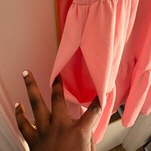 Adorable pink dress with tiered design. Features ruffle sleeves. Perfect for casual outings.