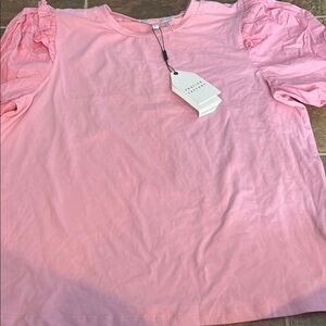 Chic pink top with ruffle sleeves. Perfect for casual outings. NWT