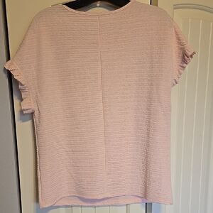 Chic and comfortable pink top with ruffle sleeves. Perfect for any casual outing.