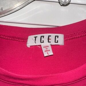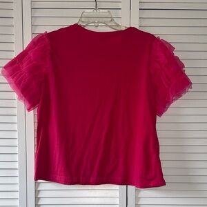Bright pink top with stylish ruffle sleeves. Perfect for adding a pop of color to any outfit.