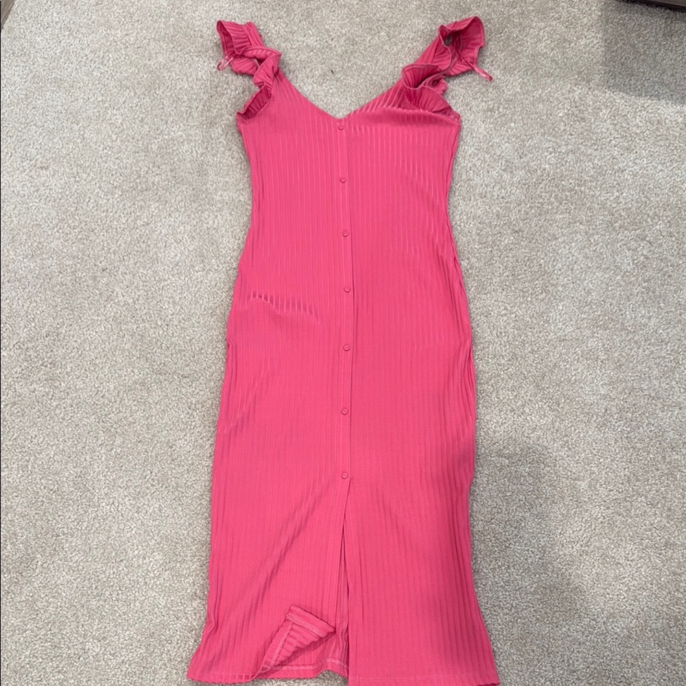 Step out in style with this pink dress featuring charming ruffle straps. Perfect for any occasion. Size M, has stretch