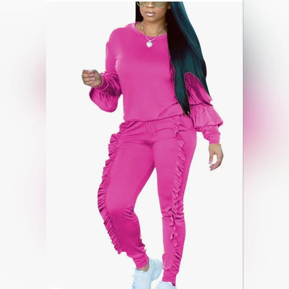Pink Ruffle Sweatsuit Set
