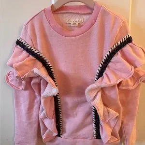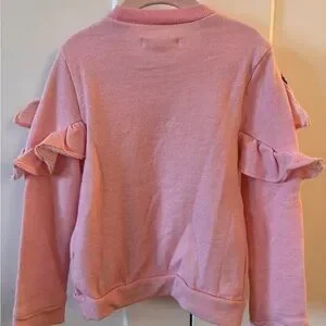 Charming pink ruffle sweatshirt with threaded accents. Super original!