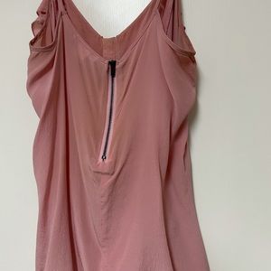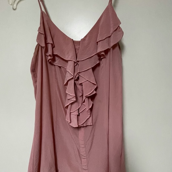 Ruffled pink spaghetti strap top with a 1/2 zipper back